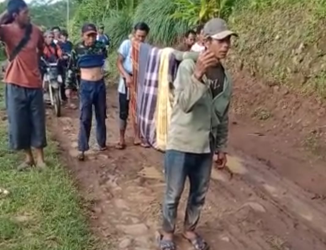 Akses Jalan Tak Layak, Warga Naringgul Tandu Jenazah