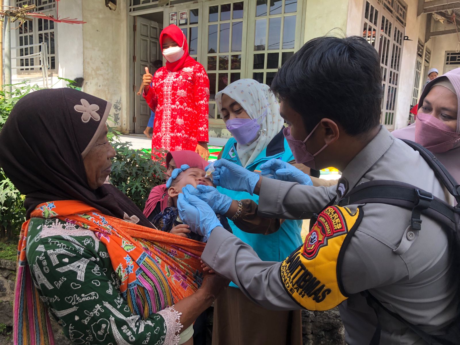 Bhabinkamtibmas Polsek Mande melaksanakan Pendampingan Dalam Pemberian Tetes Polio