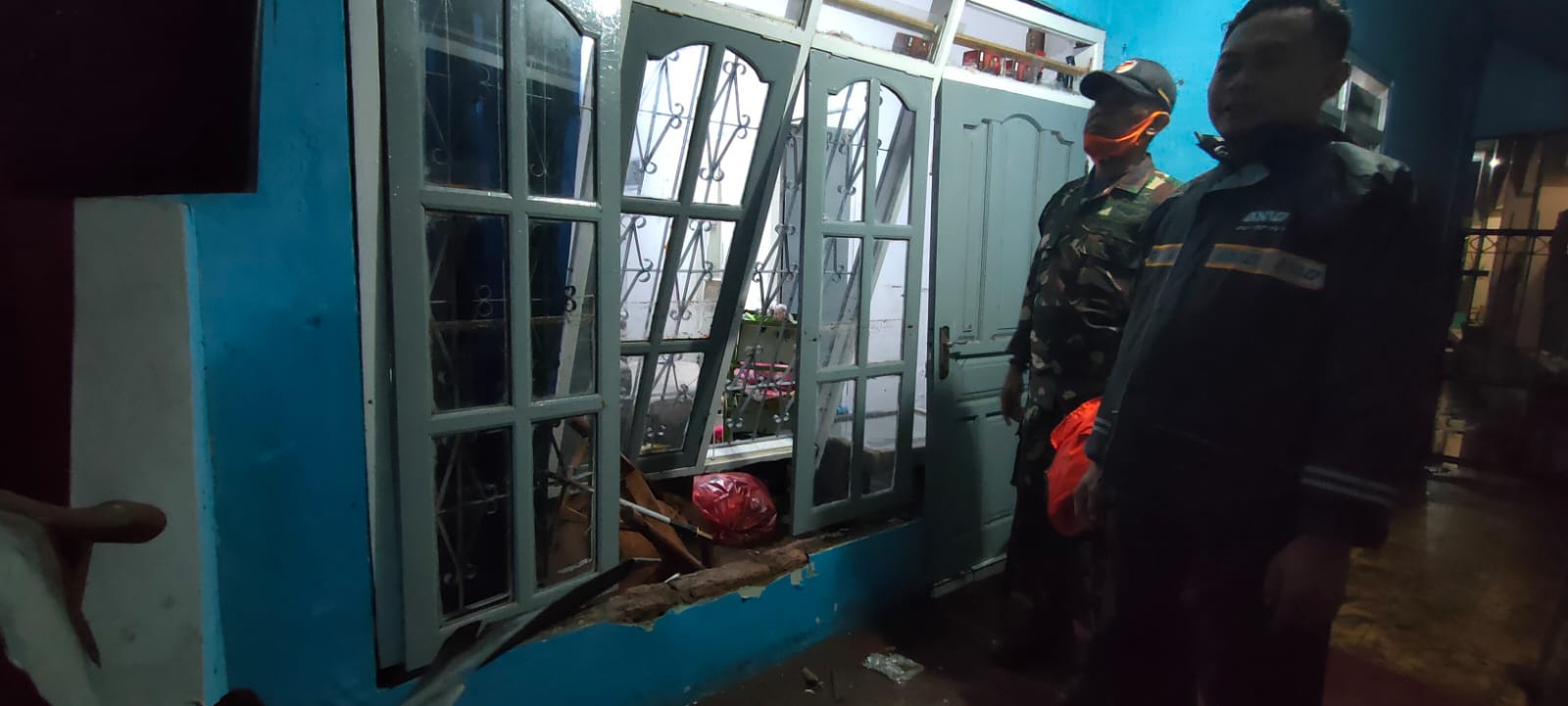 Air banjir pun masuk ke rumah-rumah warga membawa lumpur.