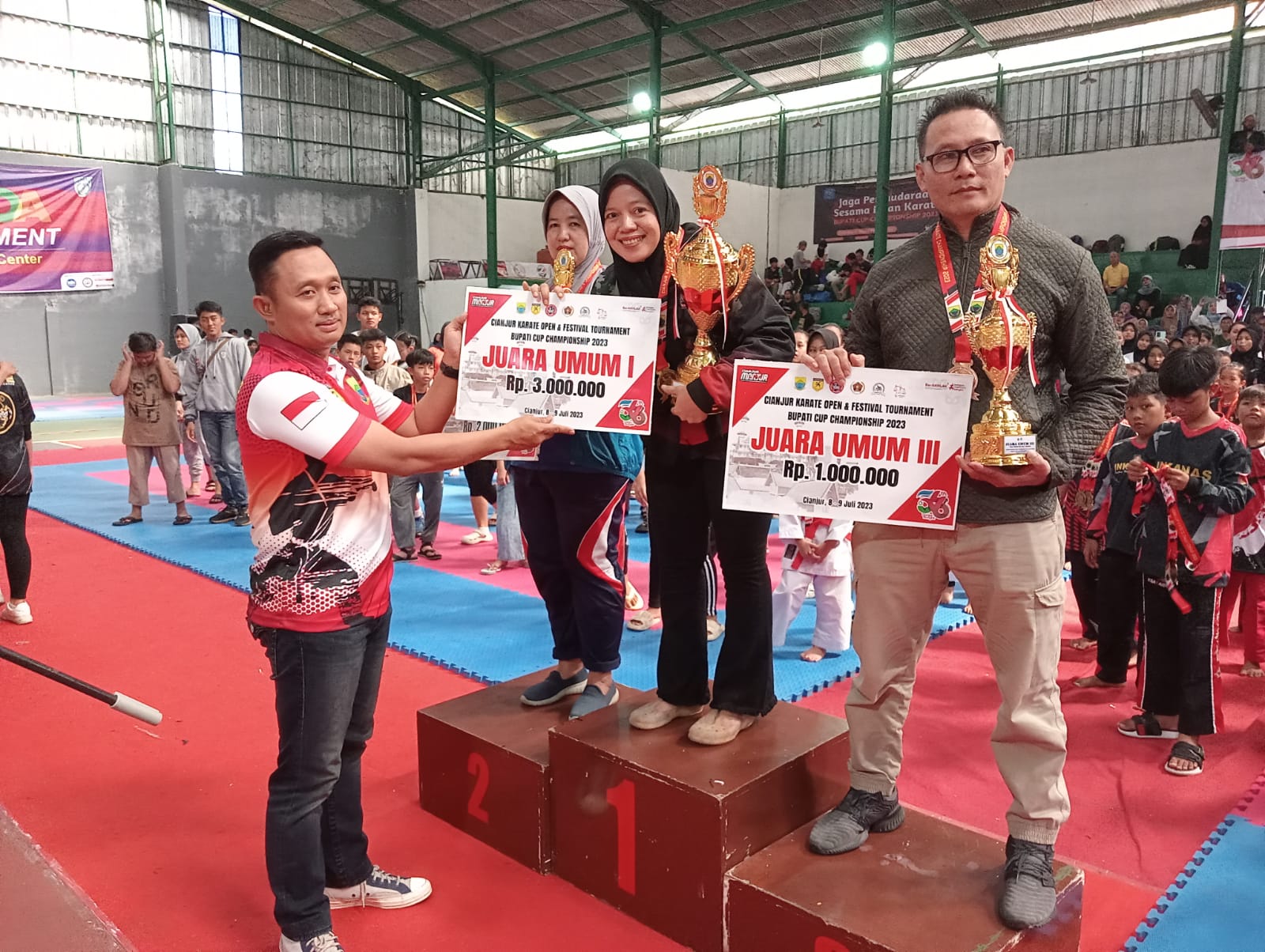 BESINFO.COM, Cianjur- Gelaran Karate Open dan Festival Turnament Bupati Cianjur Cup Championship 2023 yang digelar selama dua hari di GOR Cianjur Sport Center (CSC) resmi ditutup dengan hasil Institut Karate-Do Nasional (Inkanas) Kabupaten Cianjur meraih gelar juara umum.