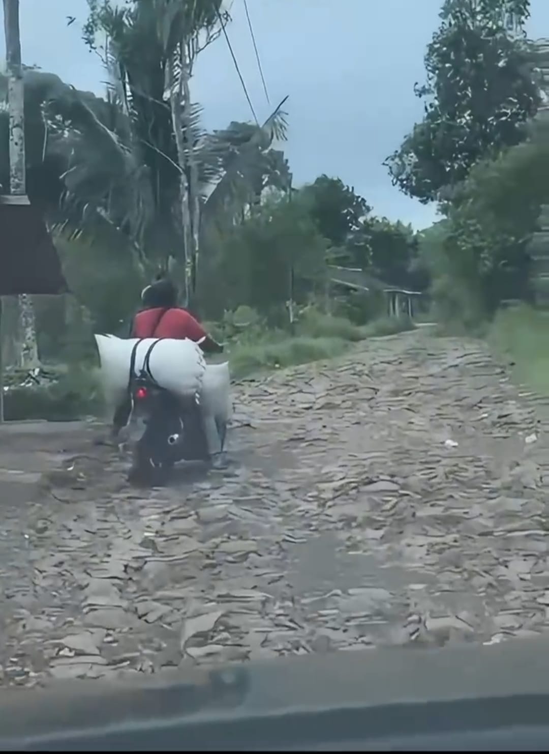 Sedangkan saat musim kemarau, bebatuan besar yang berserakan di tengah jalan berisiko menyebabkan kecelakaan dan kerusakan pada kendaraan baik roda dua maupun roda empat.