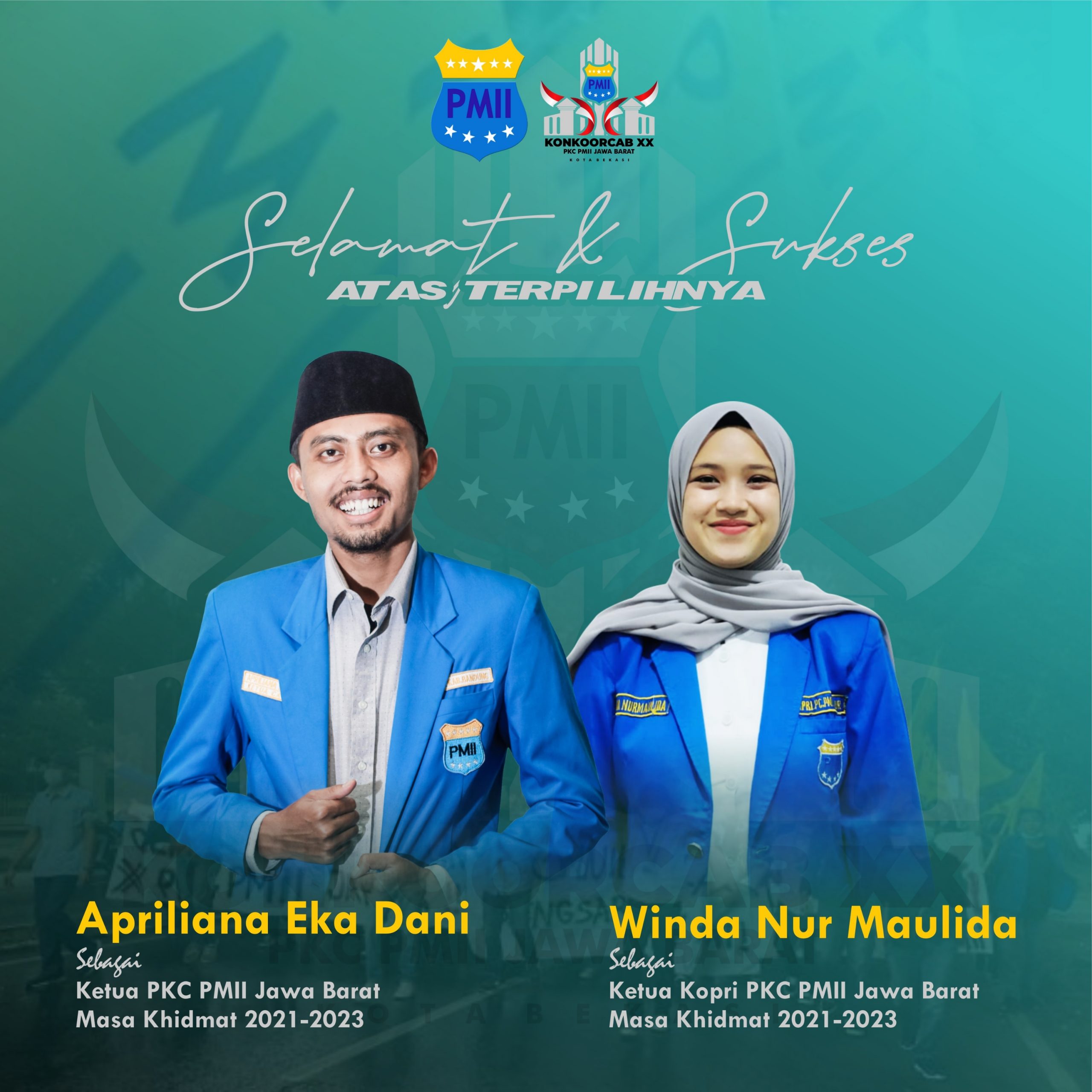 “Nurmaulida merupakan salah satu kader PMII Kabupaten Cianjur, sementara untuk Apriliana Eka Dani, ketua PKC terpilih adalah kader PMII Kabupaten Bandung dimana sebelumnya ia juga pernah menjabat sebagai ketua PC PMII di daerah tersebut,” pungkasnya.