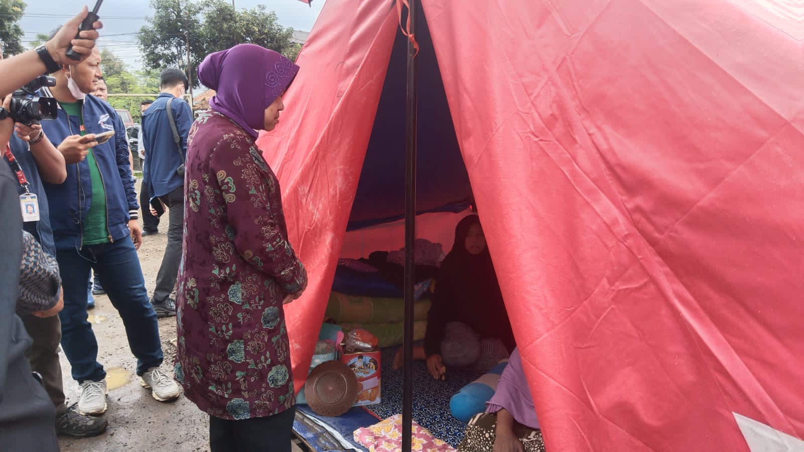 BESINFO.COM, Cianjur- Menteri Sosial Tri Rismaharini mengunjungi posko pengungsi untuk menyemangati para warga terdampak, 1.600 staf Kemensos dan 600 Tagana yang masih bertahan membantu Pemkab Cianjur dalam masa tanggap darurat gempa.