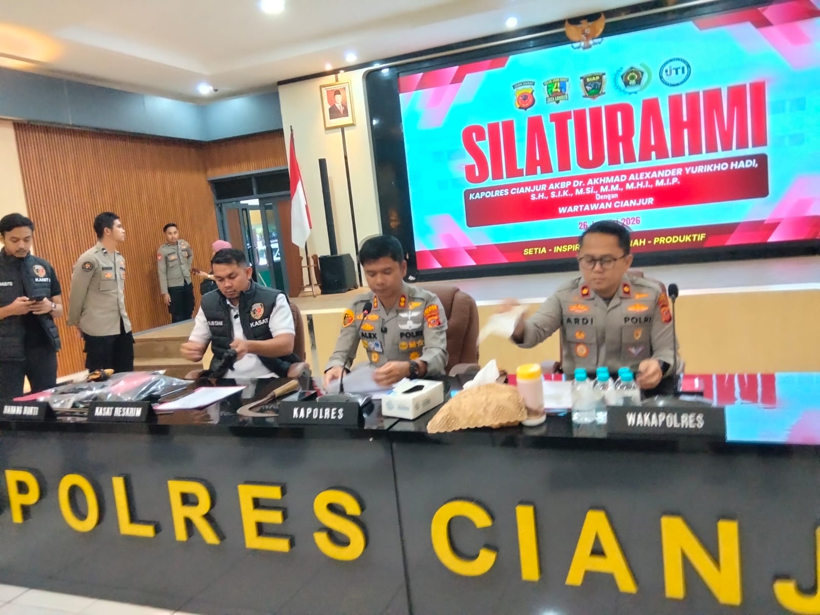 “Tanpa bertanya terlebih dahulu para pelaku langsung turun dan menyerang korban menggunakan senjata tajam jenis celurit,” tutur Kapolres Cianjur AKBP Dr. Akhmad Alexander Yurikho Hadi, S.H., S.I.K., M.Si., M.M., M.H.I., M.I.P saat gelaran jumpa pers di Aula Primkopol Mapolres Cianjur, Senin 26 Januaari 2026.