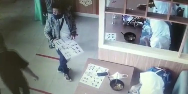 BESINFO.COM, Cianjur – Aksi pencurian satu unit handphone milik seorang pengunjung kedai ramen di Citymall, Cianjur, terekam kamera pengawas (CCTV), Kamis (16/12/2021).