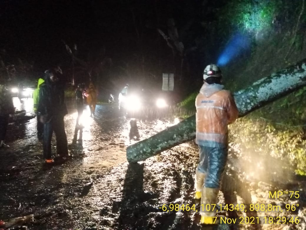 “Tim BPBD tiba di lokasi pada kam 18.24 Wib dan langsung evakuasi pohon tumbang di jalur Jalan Cibeber – Sukanagara,” kata dia, Minggu (7/11/2021).
