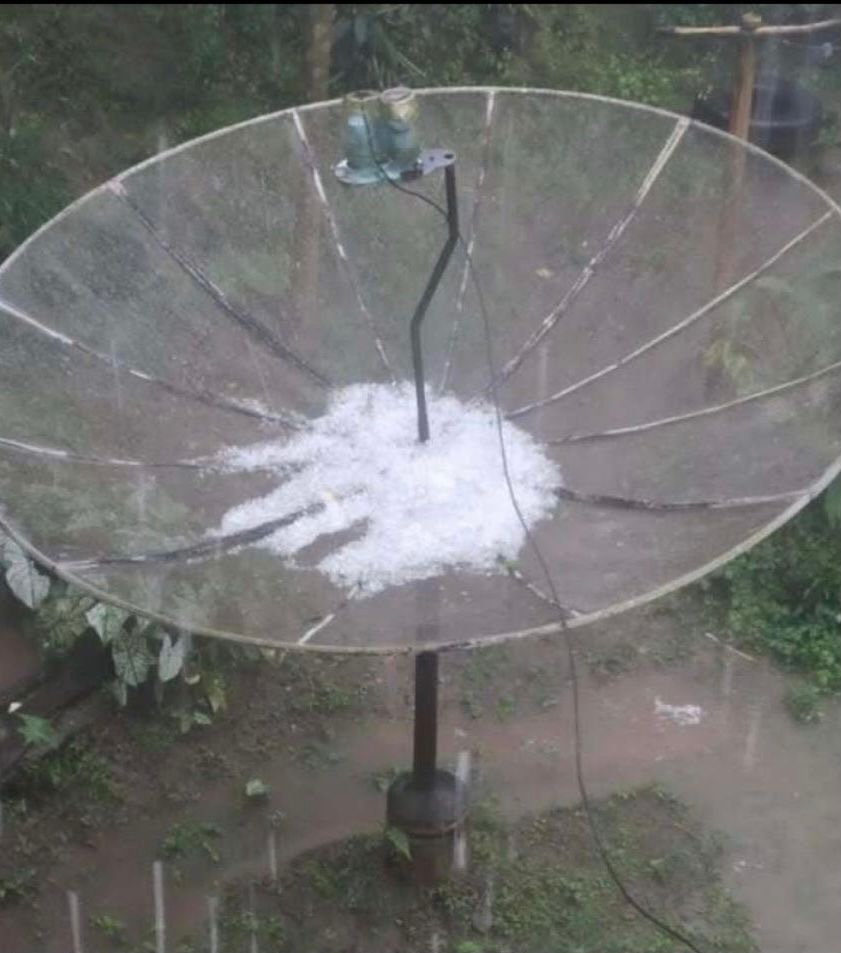 Hujan beserta es terlihat tertampung di parabola milik warga 📸 Istimewa