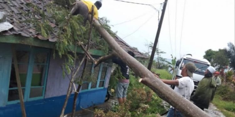 “Untuk sementara ini, ada satu rumah warga di Kampung Sukamulya RT 01/01 rusak parah, dan lainnya rusak ringan setelah ditimpa satu pohon besar yang tak jauh dari rumah korban,” katanya saat dihubungi melalui sambungan telepon.