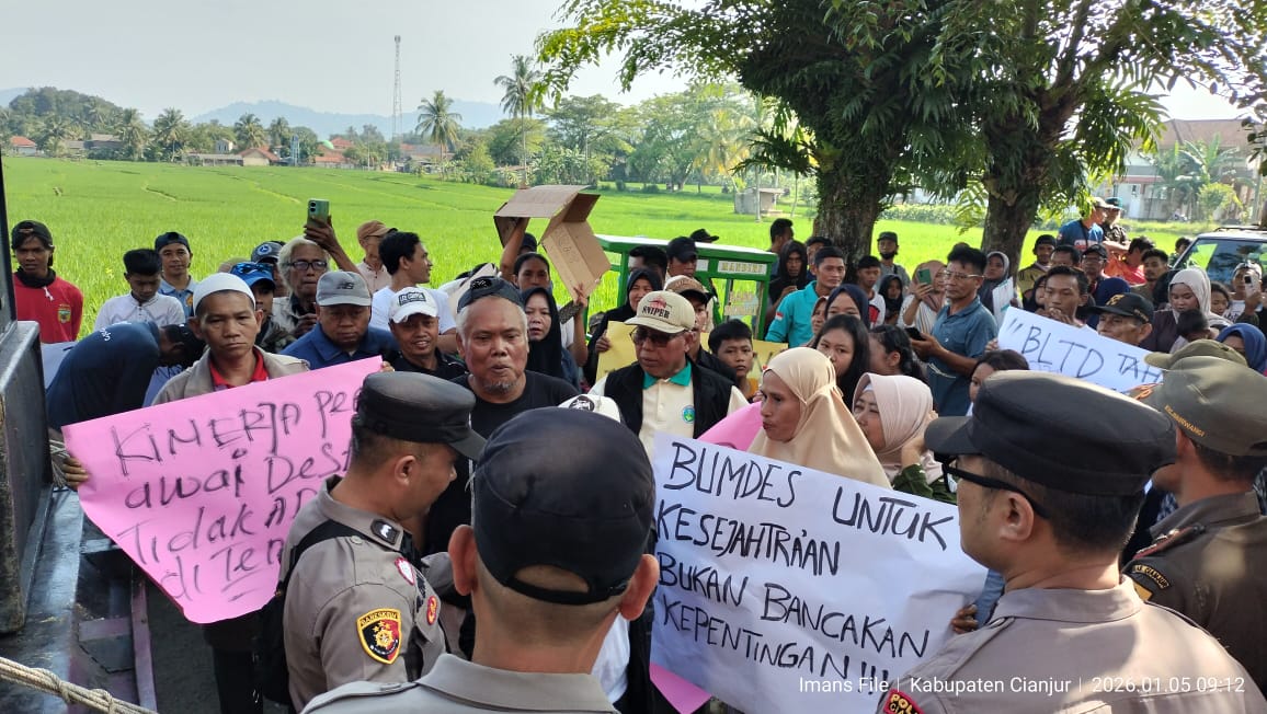 Dengan pengamanan TNI-Polri, massa membawa spanduk kritik terhadap kinerja pemerintahan desa. Koordinator aksi Encep Sumirat menyatakan, warga mendesak Dinas Pemberdayaan Masyarakat dan Desa (DPMD) serta Inspektorat melakukan audit menyeluruh.