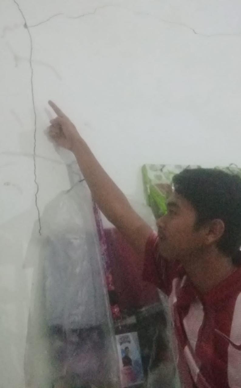 Akibat gempa yang dirasakannya, rumah Ricky mengalami kerusakan retak-retak pada bagian dinding.