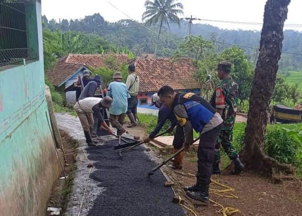 Wujud Kepedulian, Bhabinkamtibmas Polsek Cilaku Bantu Warga Perbaiki Jalan